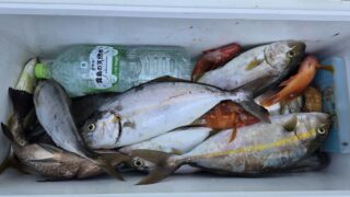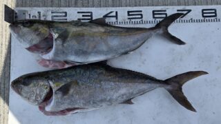 釣果情報 8月27日 27.7℃。ルアーでカンパチ77㌢、65㌢。※良型カンパチでした。(^-^)vメータークラスも見えたようでした。まだまだ暑いですのでこまめに水分補給を!! 2025.08.28 釣果情報