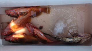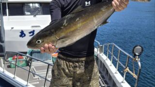 釣果情報 8月13日 28.5℃。ルアーでカンパチ76㌢、モンツキ2枚。他磯アカバ〜41㌢6枚、ネイリ2本。アカバ10枚程、ユカタハタ40㌢、オオモンハタ。フカセで、グレ、イサギ。 2025.08.14 釣果情報