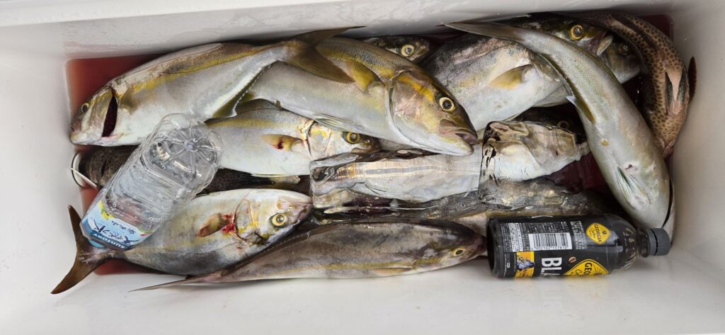 ネイリ〜50㌢14本+13本、オオモンハタ3枚など。
