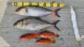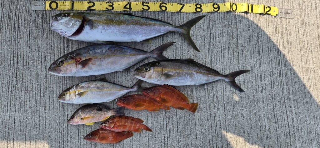 ルアーでヒラマサ83㌢、カンパチ67㌢、63㌢、ネイリ、アカバ4枚。