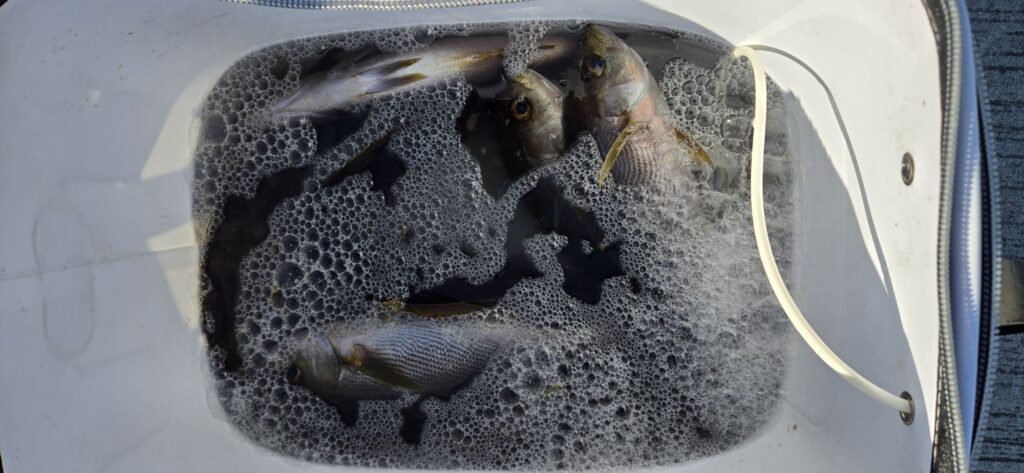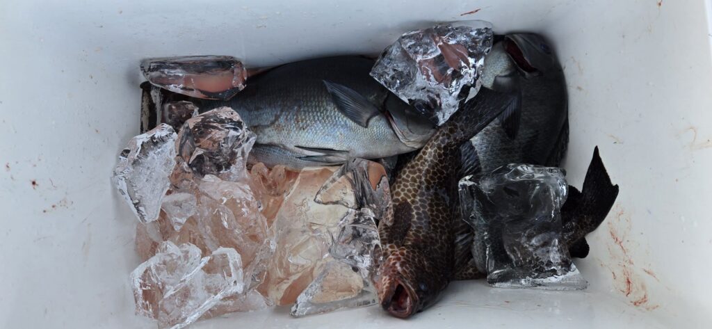 グレ〜41㌢4枚、グレ2枚、オオモンハタ、イサギ2枚。