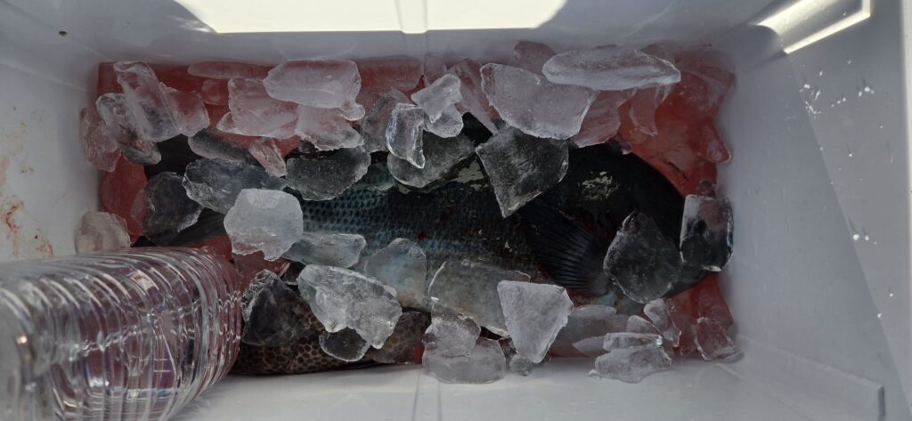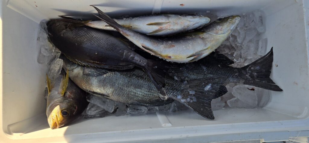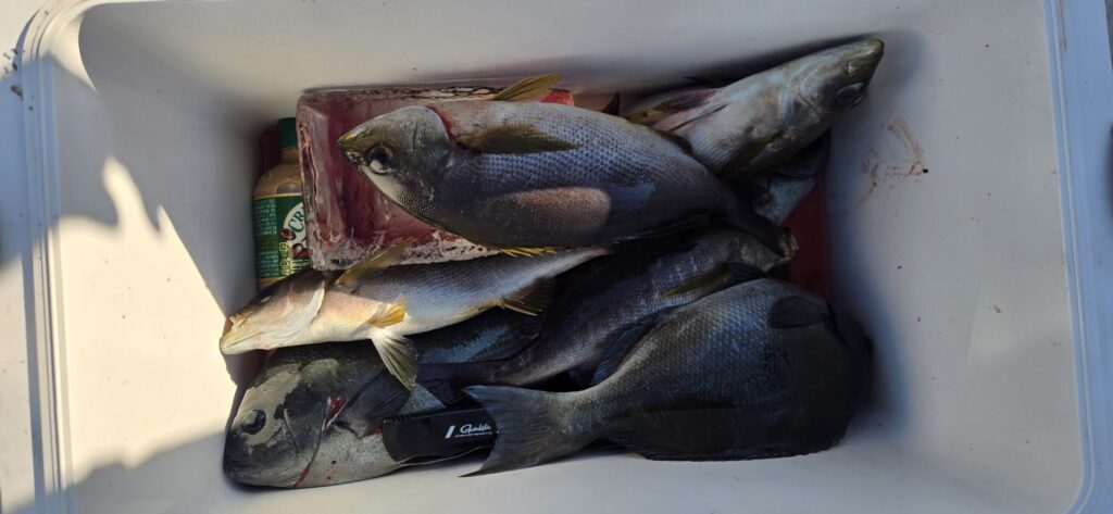 フカセでグレ〜41㌢3枚、イサギ6枚。