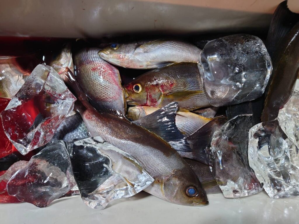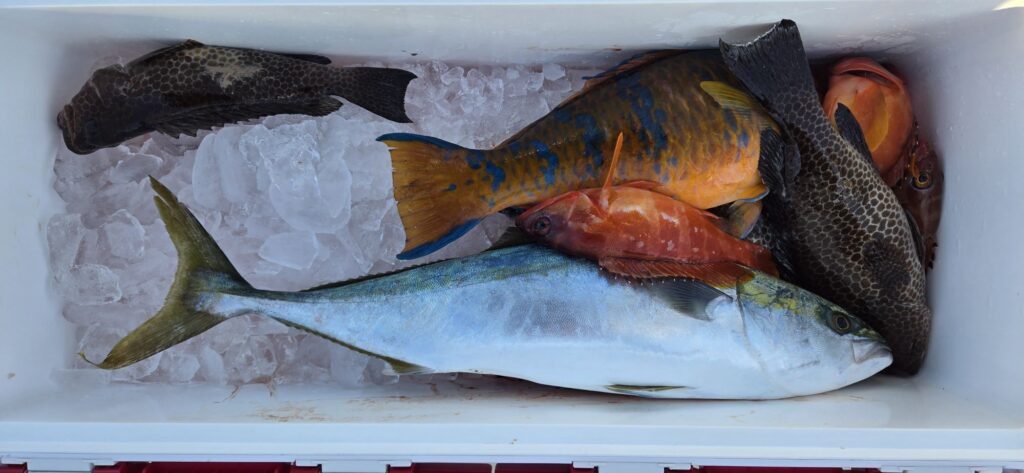 ルアーでヤズ、オオモンハタ、アカバなど。