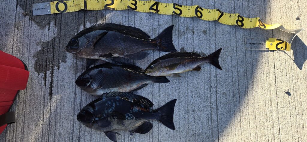 グレ〜45㌢3枚、イサギ6枚など。