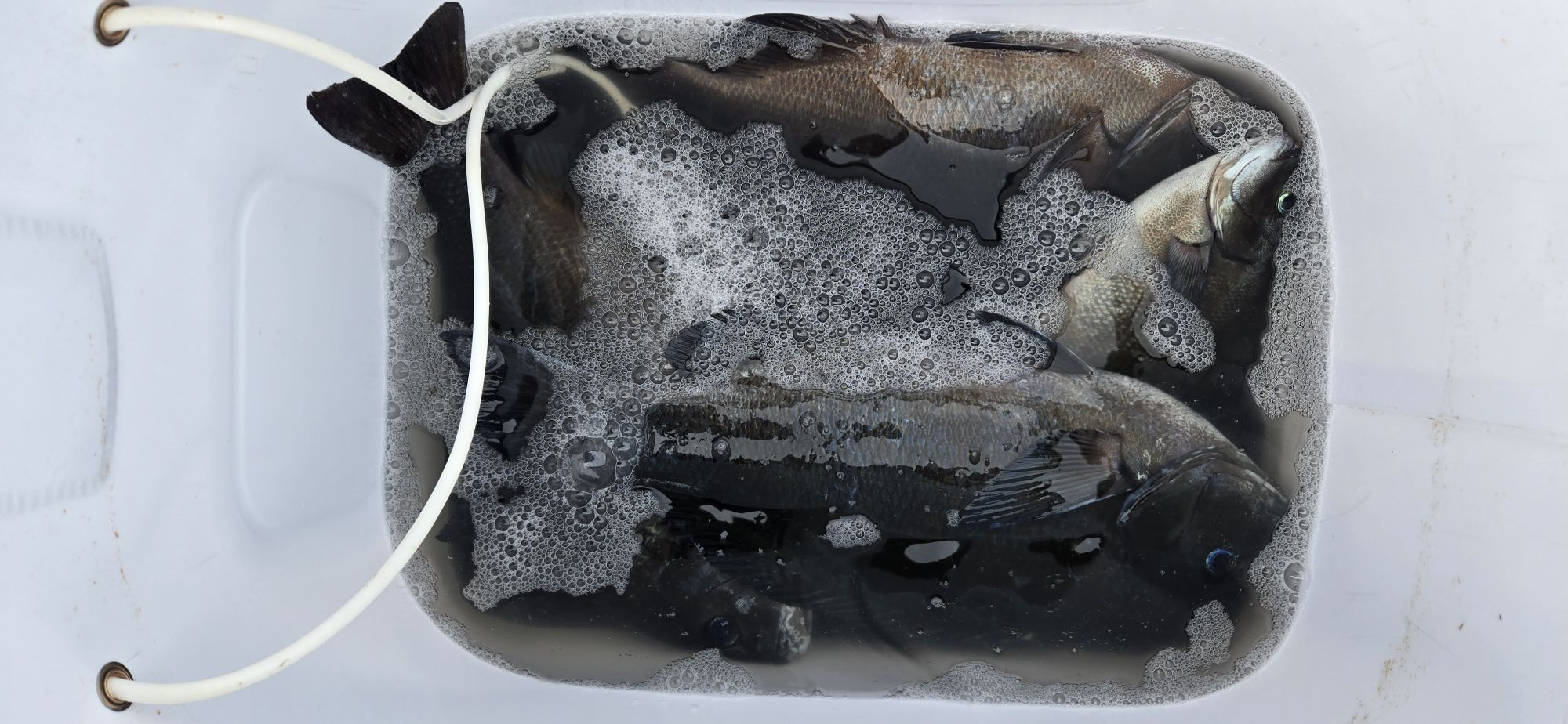 フカセでグレ〜45㌢5枚、イサギ4枚。