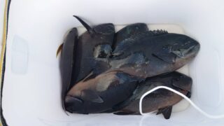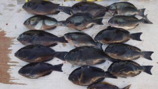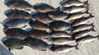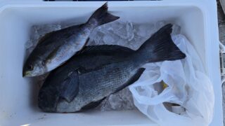 18.2℃グレ〜47㌢6枚、尾長45㌢、イサギ3枚。グレ〜45㌢6枚、尾長44㌢。※風陰の地磯周りで良型グレ、イサギ釣れてました。