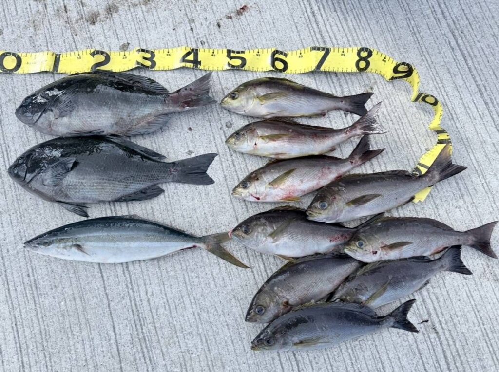 グレ42㌢2枚、イサギ9枚、ツムブリ。