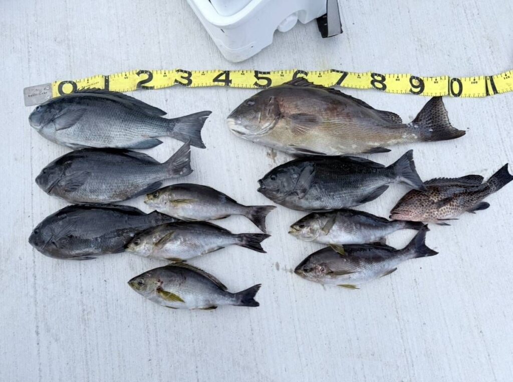グレ〜42㌢4枚、オオモンハタなど。