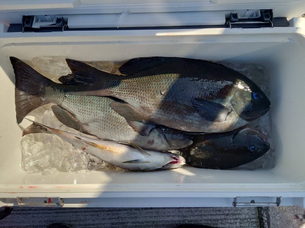 グレ〜45㌢3枚、イサギ。
