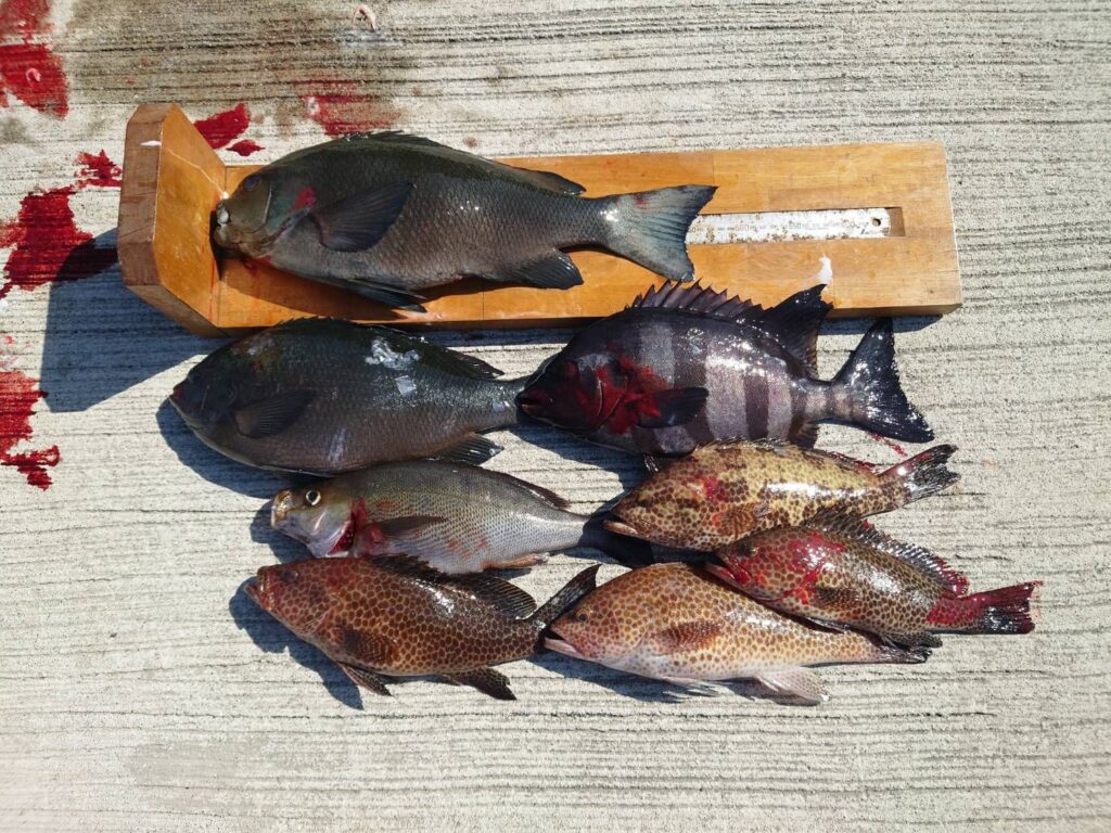 グレ48㌢、43㌢、イサギ、石鯛、オオモンハタ4枚。