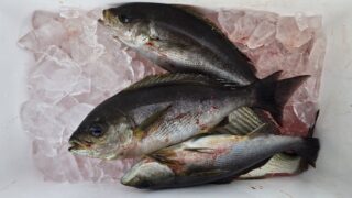 20.0℃。ルアーでカンパチ60㌢、ハマチ70㌢、モンツキ、アカバ、オオモンハタなど。フカセでグレ2枚、イサギ2枚+3枚。