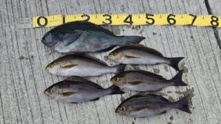 22.0℃。グレ4枚+5枚、イサギ10枚、オオモンハタ、タマメなど。