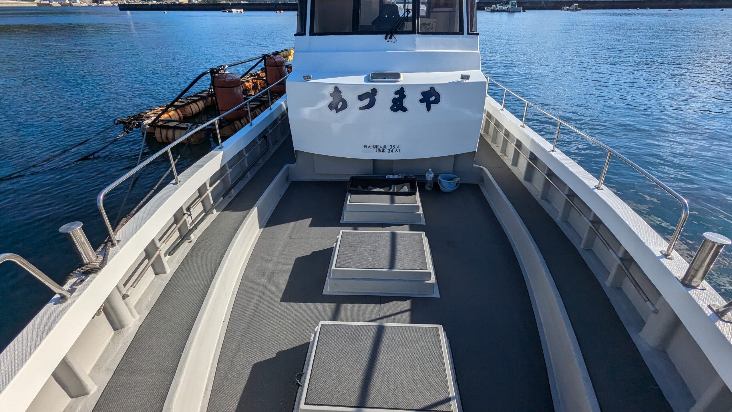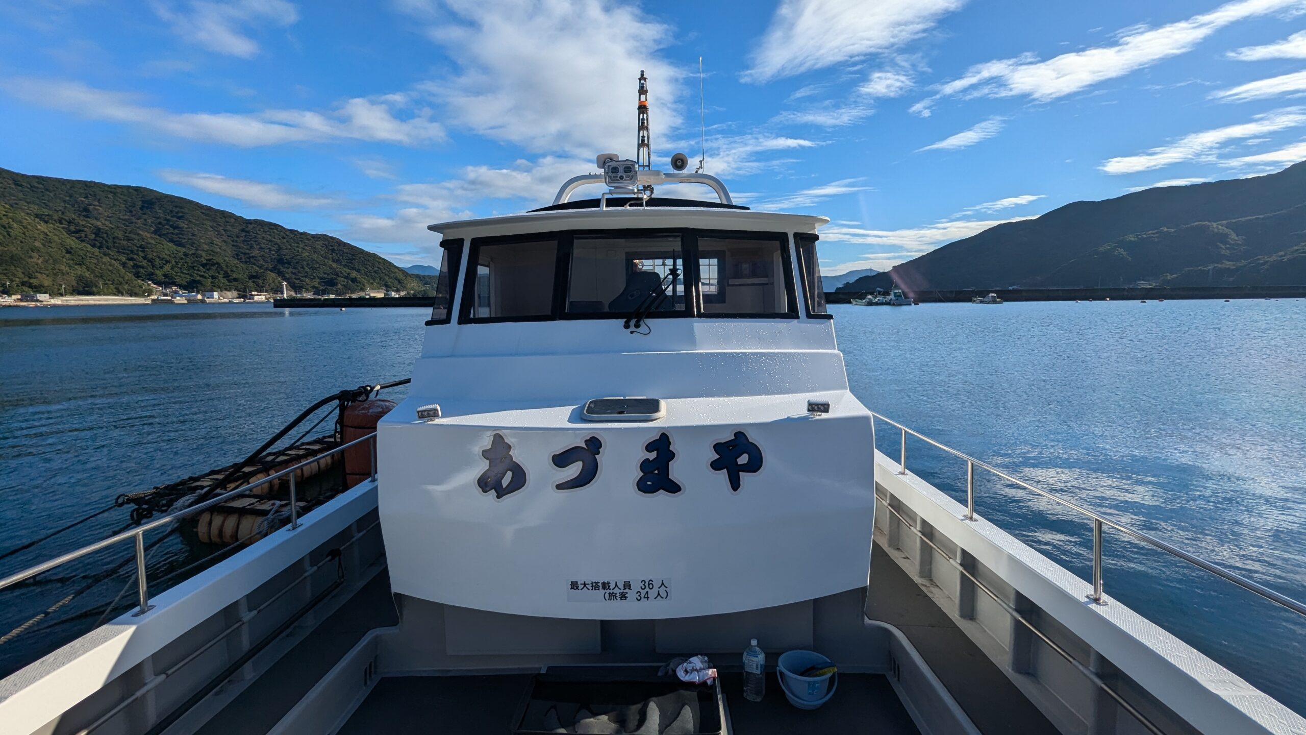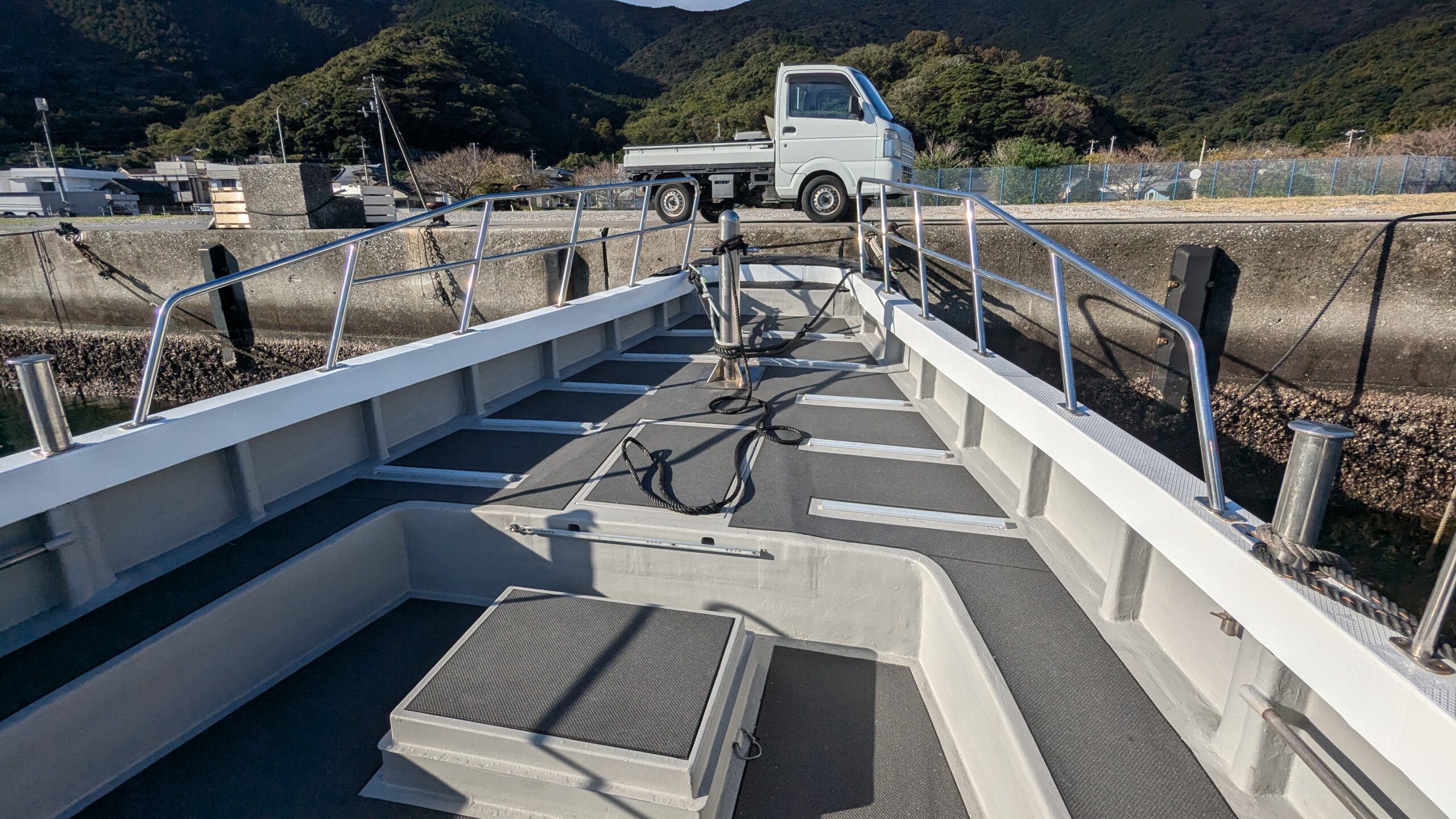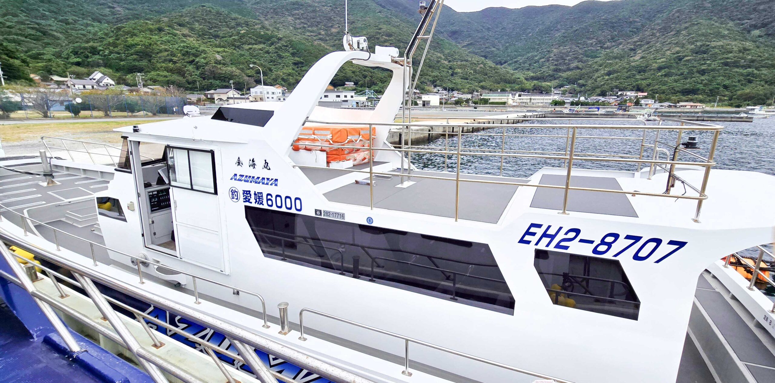 新船は二軸船となっております。プロペラとエンジンが二基搭載されてるので今まで以上に速い航行と安定した着船を実現しております。愛媛県愛南町で磯釣りを楽しむ際は是非あづまや渡船をご利用ください。