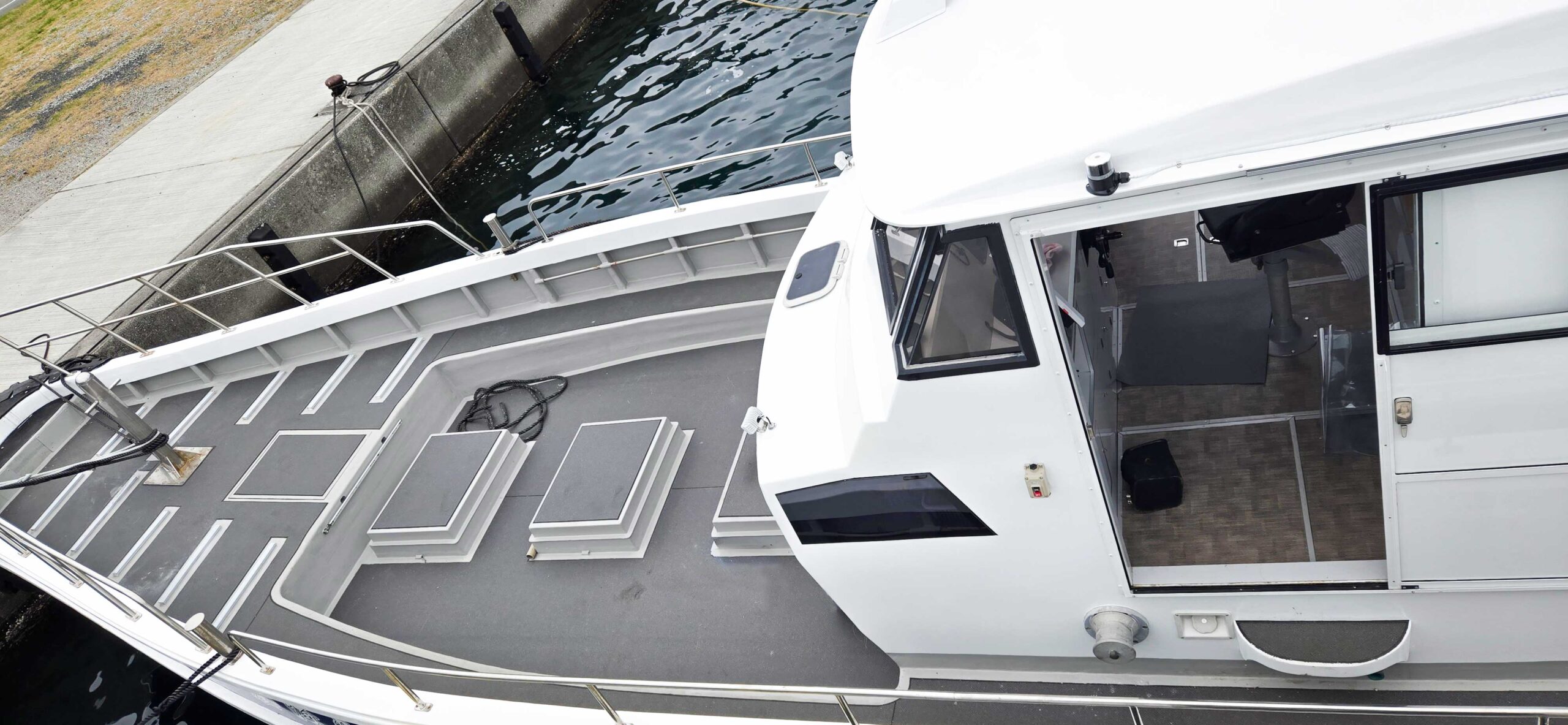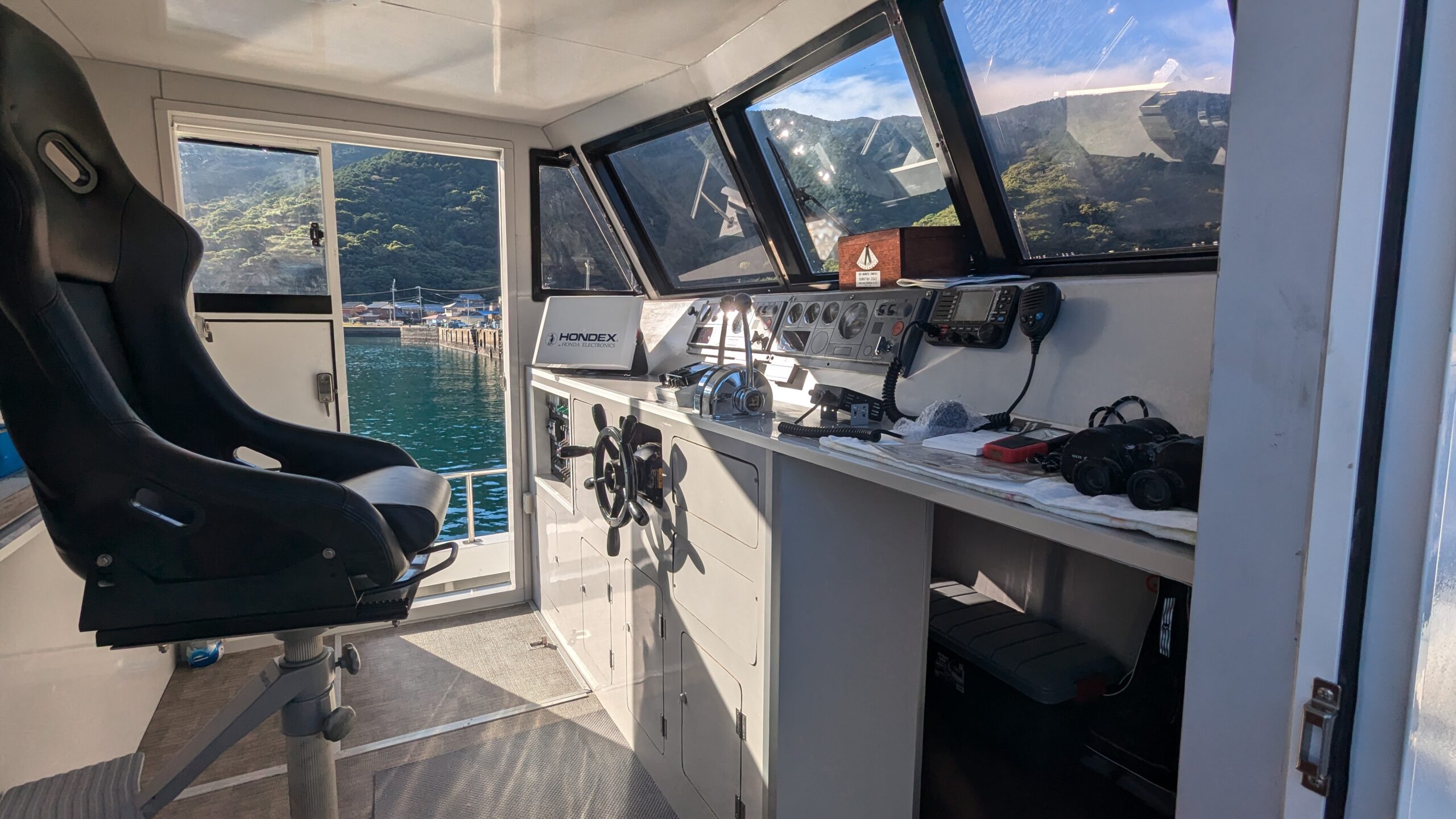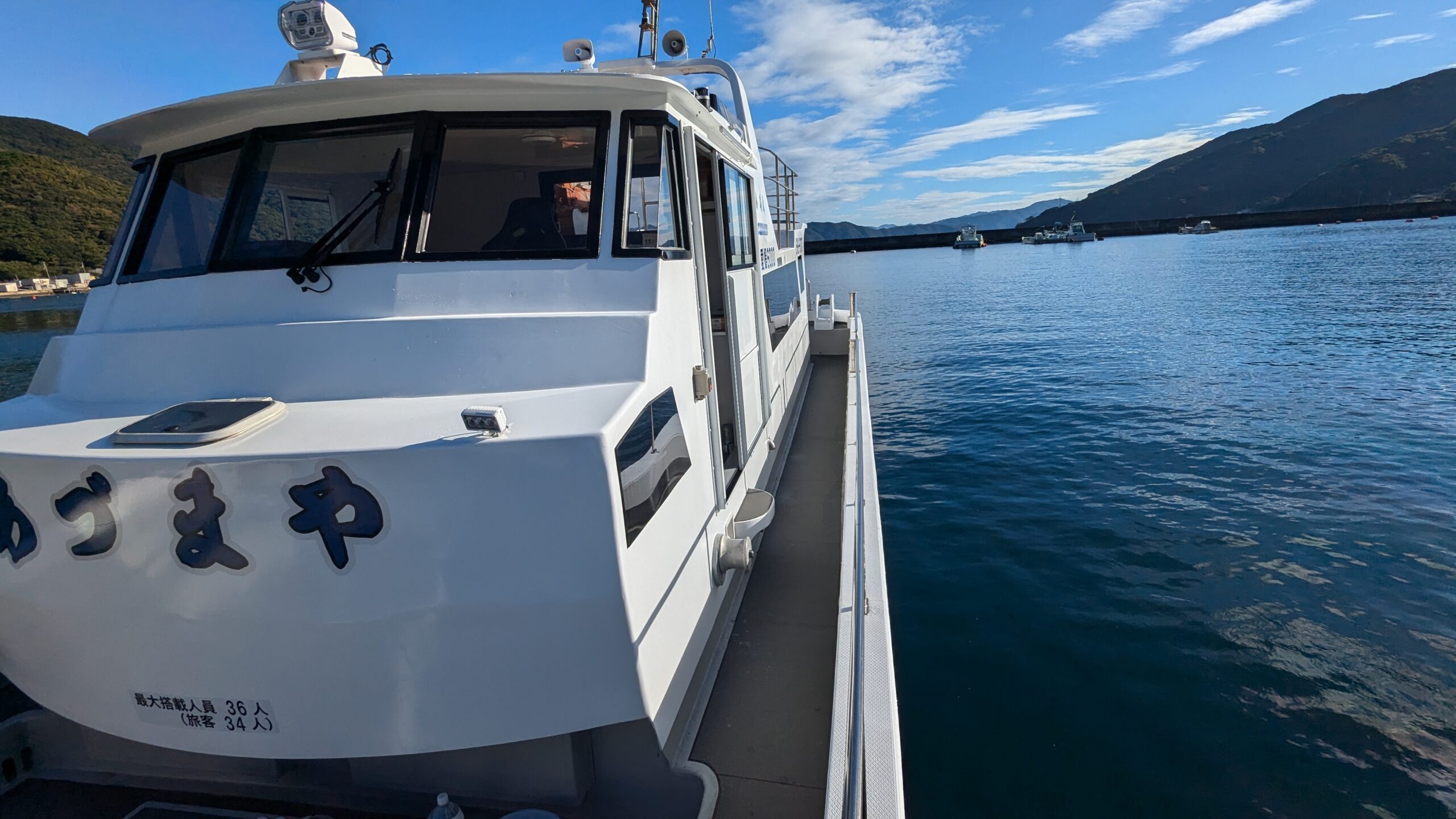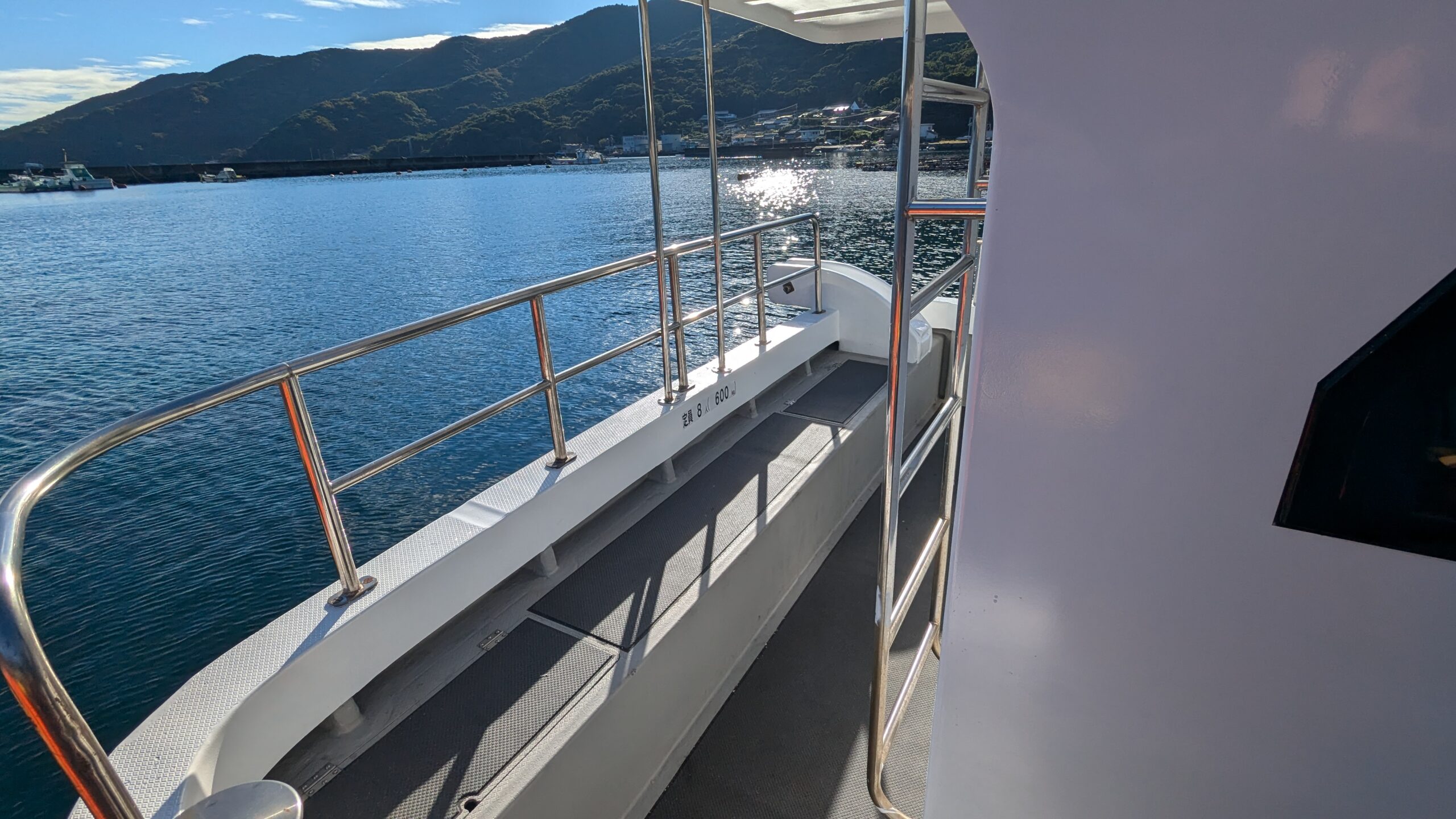 新船は二軸船となっております。プロペラとエンジンが二基搭載されてるので今まで以上に速い航行と安定した着船を実現しております。愛媛県愛南町で磯釣りを楽しむ際は是非あづまや渡船をご利用ください。